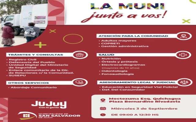 El programa “La Muni junto a vos” tiene como objetivo acercar los servicios municipales, facilitar trámites cerca de los domicilios, fomentar la participación ciudadana, difundir el trabajo del gobierno local y brindar apoyo en salud, desarrollo social y defensa de los derechos de los vecinos.