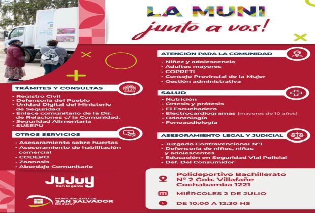 Con el objetivo de acercar los servicios municipales a los vecinos, la Municipalidad de San Salvador de Jujuy llevará adelante una nueva edición del programa “La Muni junto a vos”.