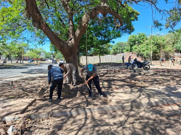 A cargo del equipo de la Secretaría de Obras, Servicios Públicos y Medio Ambiente, se ejecuta un trabajo que cada vez falta menos para que culminen con una nueva etapa del sector que alguna vez se denominó Plaza de Las Madres “estamos finalizando los trabajos de hormigonado de las veredas”, contó Matías Centeno.