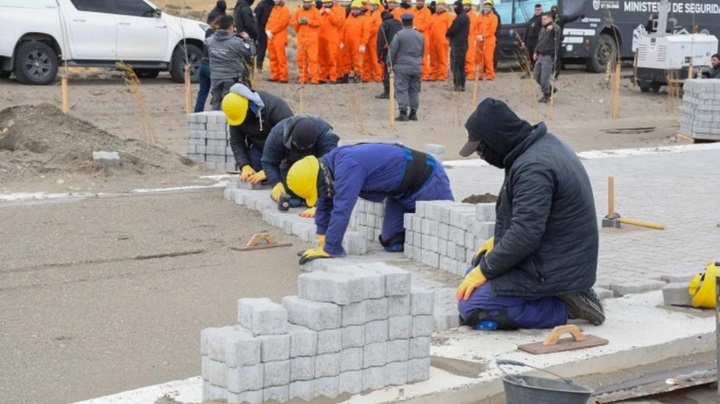Actualmente 18 de los internos colocan adoquines en un predio donde se construye un camping. La iniciativa busca combatir la reincidencia y fomentar la reinserción en la sociedad.