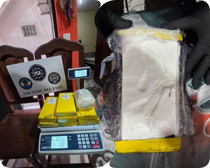 Además, se secuestraron 10.355 gramos de cocaína, 6.250 dólares, 100.000 pesos en efectivo, siete teléfonos celulares y un vehículo, que fueron puestos a disposición de la judicatura interviniente.