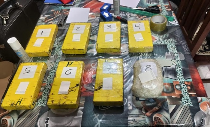 La droga se encontraba acondicionada en un paquete más nueve “ladrillos” marcados con el sello del delfín y envueltos en cinta de embalaje amarilla, características asociadas al llamado “Patrón del Norte”.