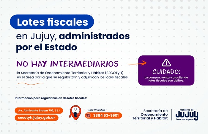 Para finalizar, el secretario de Ordenamiento Territorial y Hábitat, convocó a las familias que tengan consultas sobre la situación de sus lotes a “acercarse al Organismo para recibir asesoramiento y avanzar en su regularización, como también a informarse y avanzar en trámites tanto en nuestra página web, secotyh.jujuy.gob.ar, y mediante nuestro ChatBot, vía mensaje de texto de Whatsapp, al número 388-4639901”.