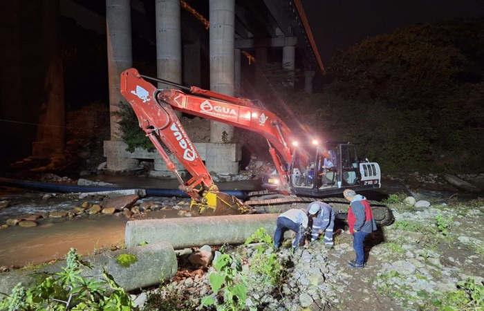 Equipos especializados se encuentran trabajando intensamente en el lugar desde la noche de ayer, enfrentando las dificultades propias del terreno y el caudal del río.