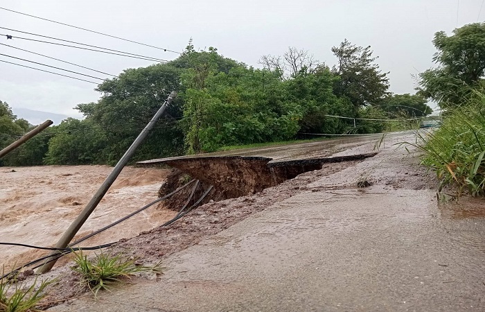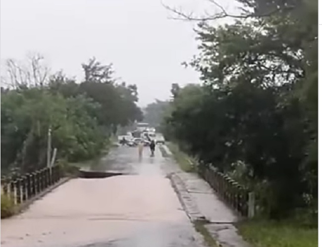 Una parte de este puente se derrumbó debido al socavamiento que produce el rio en las bases del mismo. Por lo que es imposible el tránsito de vehículos y personas por el lugar, de acuerdo a lo conocido por vecinos que fueron siguiendo lo que pasaba en el lugar.