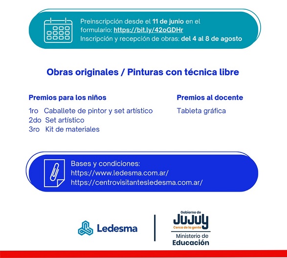Este miércoles 11 de junio, la empresa Ledesma conjuntamente con el Ministerio de Educación de Jujuy, a través de la Modalidad de Educación Artística, realizarán el lanzamiento del Concurso “Premio Ledesma de Arte Infantil” edición 2025.