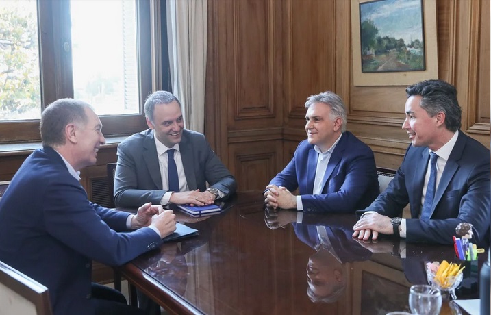Previo al gobernador cordobés, hubo una reunión de Santilli y Adorni con su par sanjuanino, Marcelo Orrego, en el marco de las rondas de reuniones bilaterales con los mandatarios provinciales que activo el designado ministro del Interior para lograr consenso para aprobar el Presupuesto en el Congreso e ir luego por las reformas laboral, impositiva y del Código Penal.