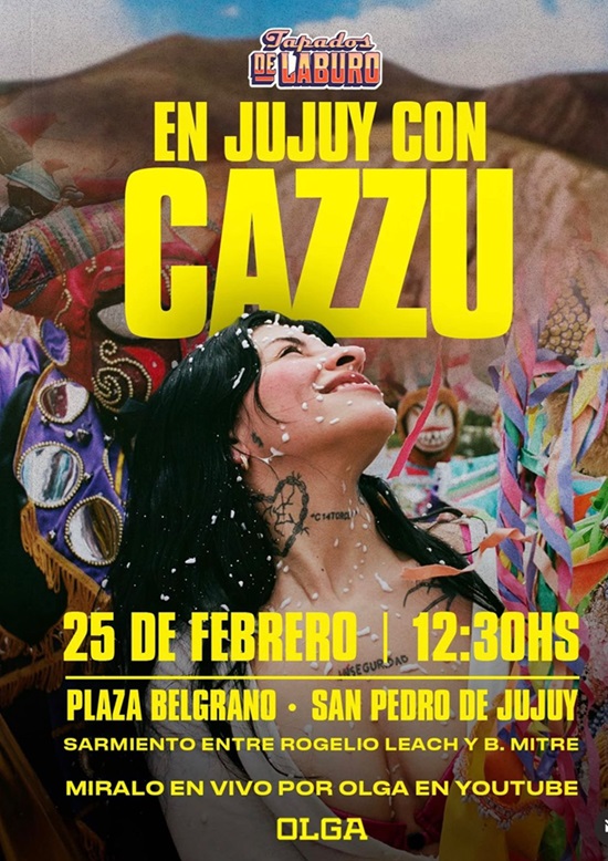 La reconocida artista jujeña Cazzu llegará este miércoles al mediodía a San Pedro de Jujuy para participar de una transmisión especial que se realizará en la Plaza Belgrano.