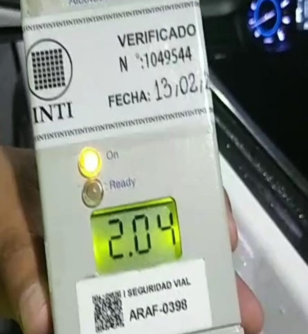 Casi al mismo tiempo, en otro control realizado en el Peaje Campana de la autopista Panamericana, un hombre de 62 años dio 2,04 g/l en el test de alcoholemia y, tras ser notificado, se dio a la fuga.