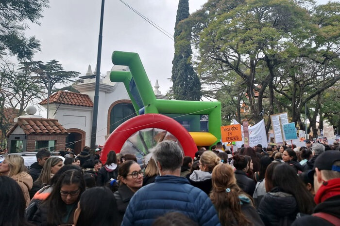 Cientos de personas con discapacidad, familiares, educadores y acompañantes terpéuticos se manifestaron frente a la residencia presidencial ante una inminente medida del Gobierno que permitiría que las empresas que financian las prestaciones fijarán aranceles “que les parezca o convenga” de manera unilateral, discrecional e independiente.