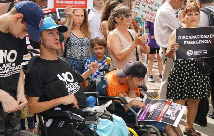 “Respetemos a todos/ No a la desregulación”, “No somos un gasto innecesario, tenemos los mismos derechos que cualquier persona”, “No a la desregulación de las prestaciones básica de discapacidad”, fueron algunos de los mensajes escritos en las decenas de carteles desplegados frente a la Quinta Presidencial.