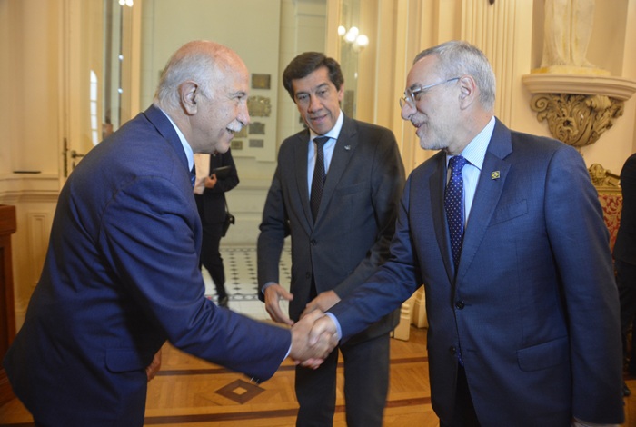 Embajador de Brasil Julio Glinternick Bitelli, gobernador Carlos Sadir y vicepresidente 1º de la Legislatura Mario Fiad