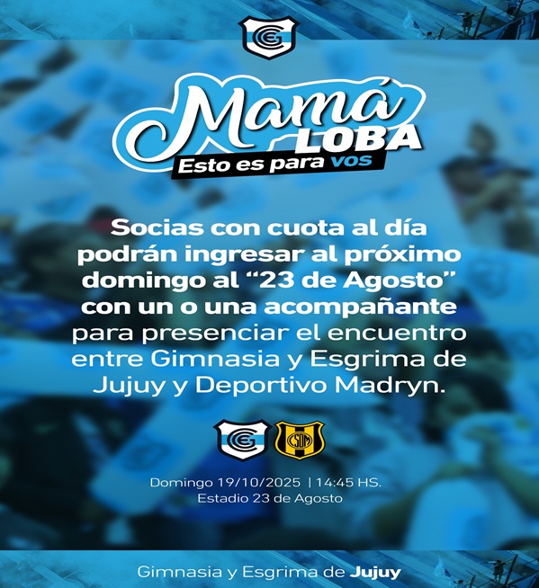 Socias que tengan la cuota al día, podrán ingresar con un o una acompañante al estadio “23 de Agosto” para presenciar el encuentro entre Gimnasia y Esgrima de Jujuy y Deportivo Madryn.