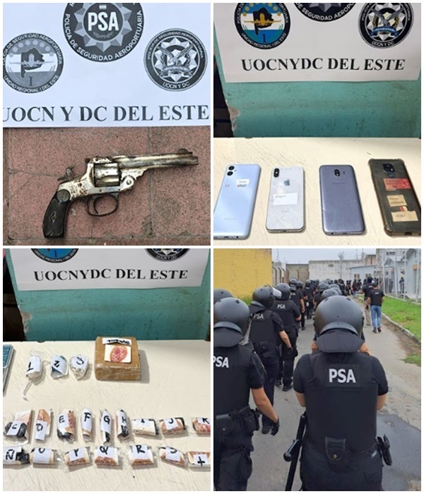 Tras realizar siete procedimientos dentro del penal y nueve allanamientos en domicilios ubicados en el AMBA, los oficiales detuvieron a 22 personas e incautaron marihuana, cocaína, metanfetamina, balanzas, celulares y otros elementos probatorios.