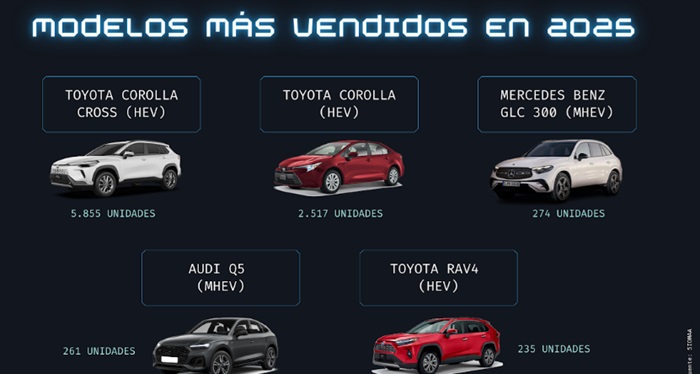 En los primeros seis meses de 2025, los modelos más vendidos fueron los híbridos Corolla Cross y Corolla sedán, consolidando el liderazgo de Toyota.