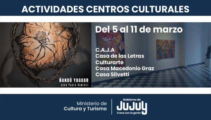 Estas propuestas forman parte del trabajo sostenido para fortalecer los centros culturales como espacios de encuentro, formación y acceso al patrimonio artístico jujeño. Desde la Secretaría de Cultura se renueva la invitación a toda la comunidad a participar y sumarse a las actividades programadas durante la semana.