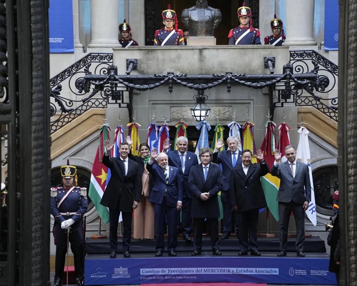 El jefe de Estado argentino recibió entre las 9.30 y las 10, hora en la que inició la Sesión plenaria de los Presidentes de los Estados Partes del MERCOSUR y Estados Asociados, entre ellos, Luiz Inácio «Lula» da Silva, de Brasil; Yamandú Orsi, de Uruguay; Santiago Peña, de Paraguay; y Luis Arce, de Bolivia.