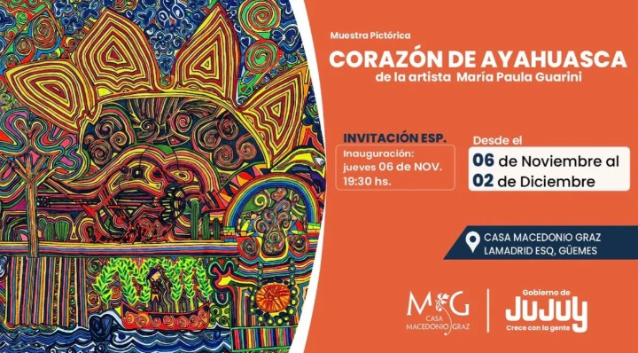 La Secretaría de Cultura de la Provincia invita a la comunidad a la inauguración de la muestra pictórica Corazón de Ayahuasca, de la artista María Paula Guarini.