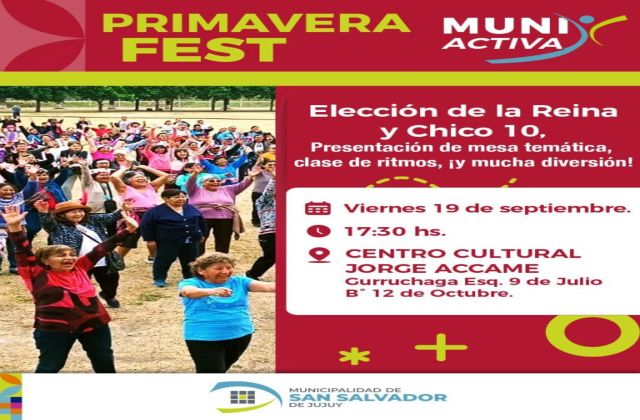 El ciclo “Muni Activa” tendrá una edición especial este viernes en el Centro Cultural “Jorge Accame”, a partir de las 17.30 horas, bajo el lema “Primavera Fest”.