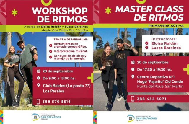 La directora de Inclusión y Deportes, Mariel Sadir, detalló que la actividad denominada “Primavera Activa” contará con la participación de los profesores Lucas Barainca y Eloisa Roldán, provenientes de Villa Carlos Paz (Córdoba). Ellos trabajarán en conjunto con el equipo de instructores de Móvil Gym e instructores con síndrome de Down, en una propuesta inclusiva que combinará ritmos y zumba en el predio “Pajarito” Conde del Parque San Martín, de 17.30 a 19 horas.