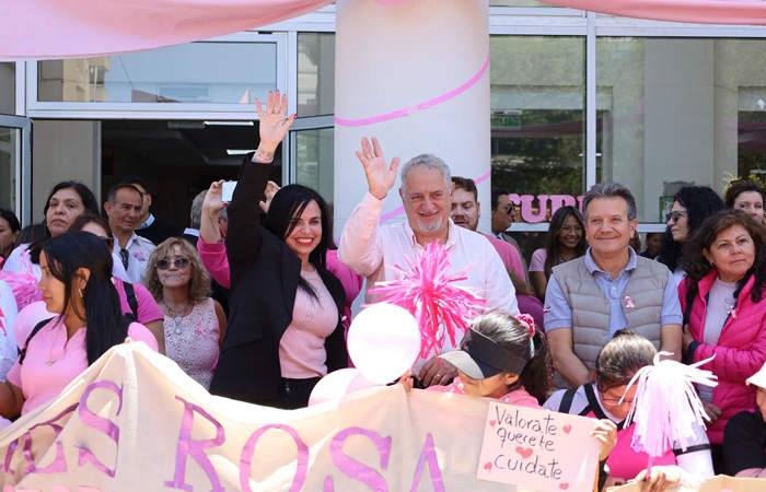 “Agradecemos al gobernador Sadir por estar presente con nosotros cerrando el Mes Rosa en el que visibilizamos la temática del cáncer de mama”, señaló Bouhid, durante la caminata que inició en el Parque San Martín y finalizó en el Hospital Pablo Soria de la Capital provincial.