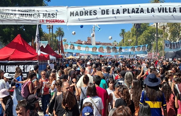 Organismos de Derechos Humanos y organizaciones sociales realizaron un multitudinario acto en Plaza de Mayo por el Día de la Memoria, donde cuestionaron al gobierno nacional y reclamaron la liberación de dirigentes detenidos, entre ellos la ex presidenta Cristina Fernández de Kirchner.