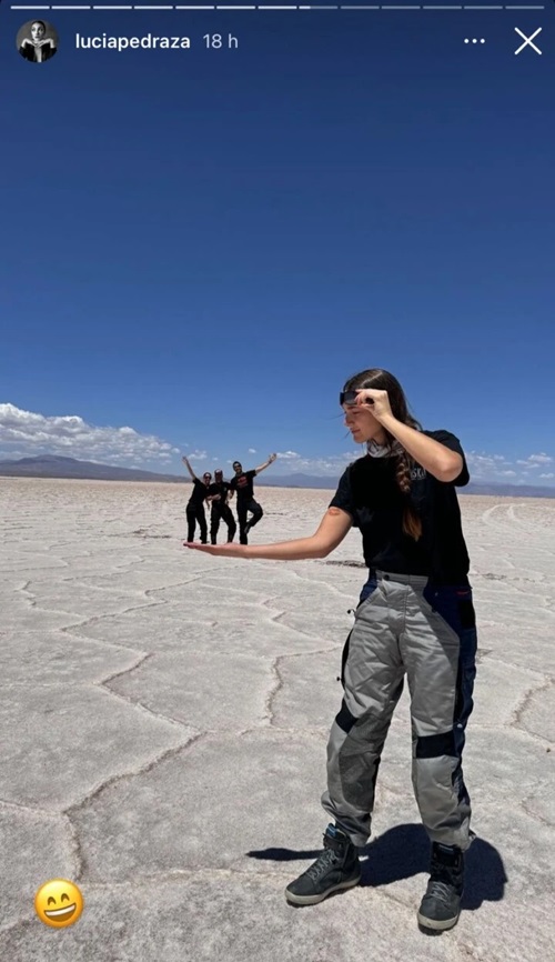 La novia del productor fue quien más postales compartió de esta travesía. Entre tantas se destacó una en la cual se los puede ver jugando en Salinas Grandes, Jujuy.