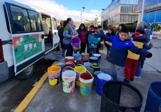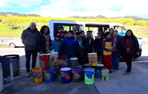 Durante el encuentro, se hizo entrega de 34 tachos reciclados e intervenidos artísticamente por los pequeños artistas.