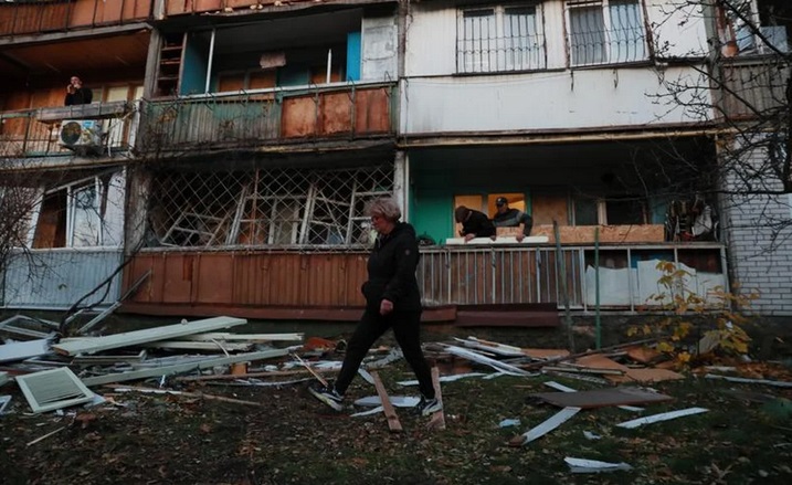 Los edificios residenciales sufrieron graves daños en el último ataque aéreo de Rusia contra Ucrania durante la noche del miércoles.