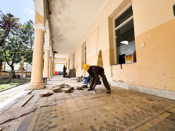 Los equipos ejecutan tareas de impermeabilización de techos, recambio de tejas coloniales, y próximamente avanzará en la demolición y reemplazo de pisos por porcelanato, como también reparaciones de revoques, pintura e iluminación en el área de galería y patio interno. En cuanto al pasillo principal, los trabajos responden al deterioro de la cubierta de chapa ondulada, la oxidación y perforaciones en su superficie, y a la necesidad de renovación de las canaletas y cielorrasos; y los pisos de mármol sueltos.