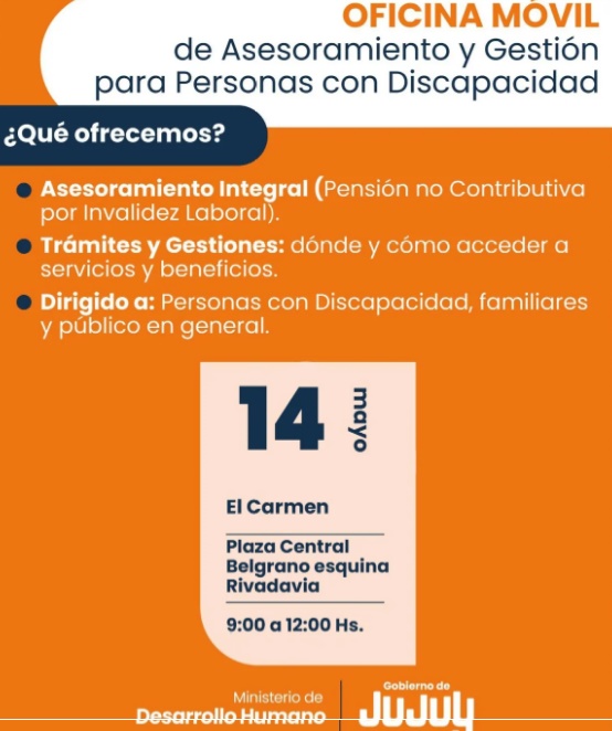 El Ministerio de Desarrollo Humano, a través de la Dirección Provincial de Inclusión de Personas con Discapacidad, dependiente de la Secretaría de Desarrollo Integral, informa que se llevará adelante una nueva jornada de atención a través de la Oficina Móvil de Asesoramiento para Personas con Discapacidad.