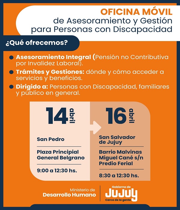 El Ministerio de Desarrollo Humano, a través de la Dirección Provincial de Inclusión de Personas con Discapacidad dependiente de la Secretaría de Desarrollo Integral, brindará asesoramiento y acompañamiento gratuito a personas con discapacidad, familiares, instituciones y al público en general.