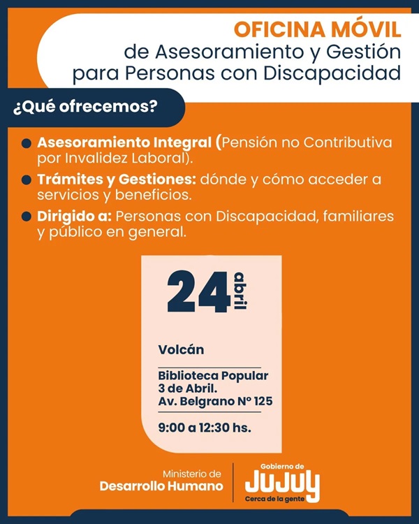 El Ministerio de Desarrollo Humano, a través de la Dirección Provincial de Inclusión de Personas con Discapacidad dependiente de la Secretaría de Desarrollo Integral, brindará asesoramiento y acompañamiento gratuito a personas con discapacidad, familiares, instituciones y al público en general.
