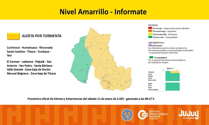 Además las mismas estarán acompañadas por abundante precipitación en cortos períodos, actividad eléctrica intensa, ocasional caída de granizo y ráfagas que podrían exceder los 60 km/h.
