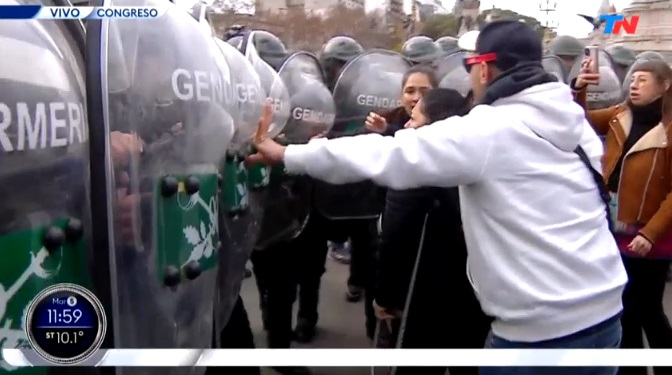 Los manifestantes que protestan en contra del veto a la Ley de Emergencia en Discapacidad se enfrentaron con la Gendarmería en la Plaza del Congreso.