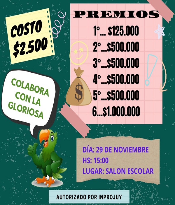 Esta rifa cuenta con la autorización del INPROJUY (Instituto Provincial de Juegos de Azar de Jujuy)