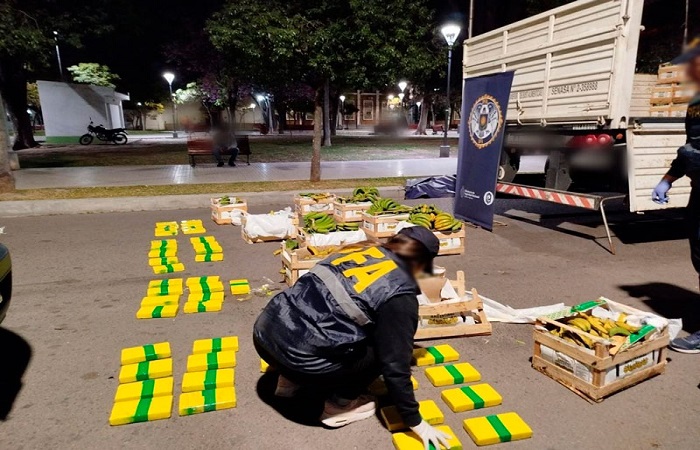 En Santiago del Estero, un camión llevaba una aparente carga de bananas y papaya, pero los efectivos del Departamento Federal de Investigaciones de la Policía Federal Argentina habían efectuado una gran investigación, coordinada por el Ministerio de Seguridad Nacional y rápidamente lo interceptaron, ante la pista del tráfico de estupefacientes.