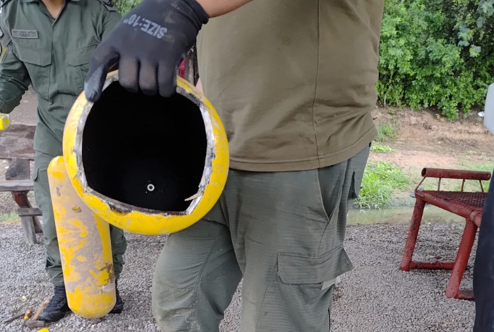 Con herramientas de corte, los gendarmes lograron extraer 42 paquetes con la droga que estaban embalados en cinta de color amarillo.