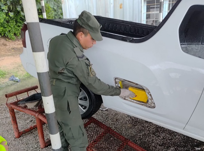 Ante esa situación, los gendarmes realizaron una inspección minuciosa que derivó en el hallazgo de paquetes rectangulares dentro de los recipientes de combustible y en los laterales del vehículo.