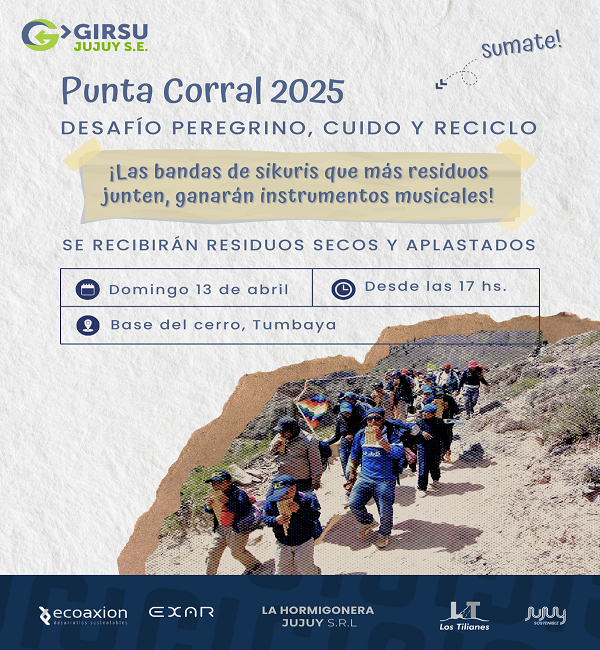 La recepción de lo recuperado en el camino de Punta Corral se realizará el domingo 13 de abril en la explanada de bajada del cerro antes de cruzar el puente. Personal de GIRSU Jujuy tendrá a disposición el punto de acopio móvil para el material y las unidades para el traslado. Los grupos de Sikuris que más residuos junten recibirán un instrumento musical para su agrupación.