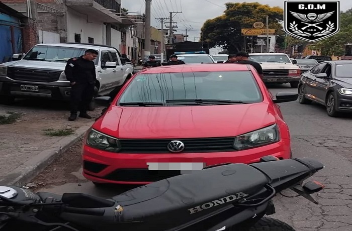 El operativo se desencadenó cuando los efectivos, que realizaban tareas de prevención bajo el dispositivo «Fiesta Segura», divisaron un automóvil rojo y una motocicleta en actitud sospechosa sobre la avenida Jujuy.