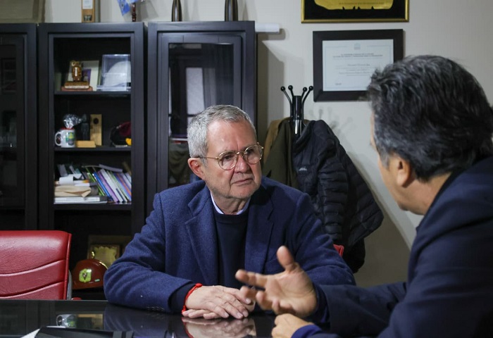 Mario Pizarro, candidato a diputado nacional por el Frente Jujuy Crece en Provincias Unidas, fue recibido por el rector de la Universidad Nacional de Jujuy (UNJu), Mario Bonillo.