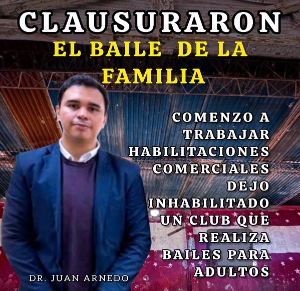 En el mismo se informa la inhabilitación del Club Atlético Independiente, Institución que realiza desde hace años eventos bailables destinados a personas mayores.