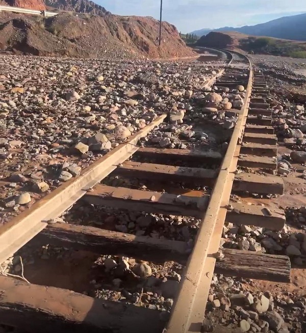 Este desprendimiento ha provocado el lavado del balasto y descalce de durmientes en una longitud de aproximadamente 50 metros.