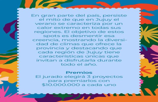 La invitación está destinada a creadores jujeños a producir spots publicitarios que muestren la verdadera diversidad climática del territorio, con inscripción abierta hasta el 26 de octubre y premios de diez millones de pesos para cada uno de los tres proyectos ganadores