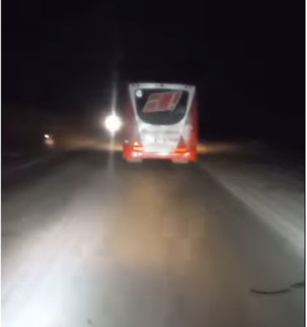 Un conductor que transitaba en el mismo sentido que el pesado rodado al ver esta situación filmo y lo publicó en una de las redes, de esta forma advertir a quienes son los encargados del control de estas empresas en la provincia y evitar que sucedan accidentes que por una imprudencia haya víctimas fatales.