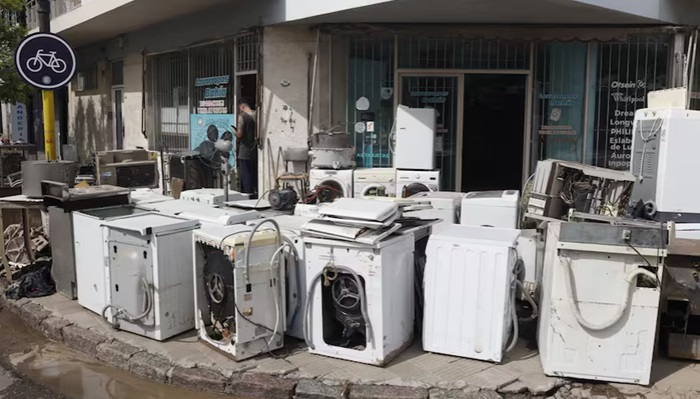 En otra esquina un técnico que repara lavarropas reparte sobre la vereda más de 40 equipos que clientes le habían dejado para reparación. Que escurran es el primer paso. Que se puedan recuperar será otra historia.