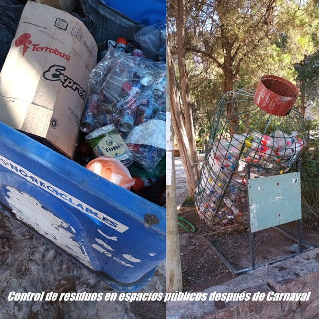 Inspecciones de control en la Quebrada de Humahuaca para evaluar la gestión de residuos en los espacios públicos después de los festejos de Carnaval.