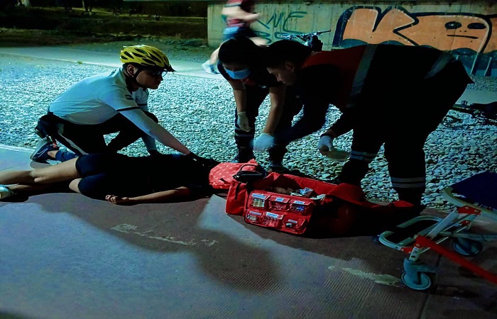 El equipo de la Unidad Policial Ciclística de Acción Rápida (UPCAR) brindó asistencia inmediata a una joven que sufrió una caída y posterior convulsión mientras andaba en bicicleta cerca del Puente Azurduy, el jueves último en horas de la noche.