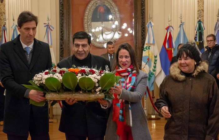 Luego del saludo protocolar, se colocó una ofrenda floral al pie de la urna que atesora el paño legado por el General Manuel Belgrano al Pueblo de Jujuy y se ejecutó un Minuto de Silencio.